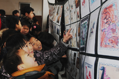 (记者 刘理政 通讯员 郭红丽) 方寸浓缩文化精髓,邮票尽显生肖魅力。1月10日,镇平县举办《甲午年》马邮票发行和首届中小学生邮票图稿绘画比赛颁奖活动。来自全县各中小学生的马年作品共计500多幅,经过激烈角逐评选出初中组和小学生组一二三等奖6人,有效地丰富了中小学生的文化生活。图为:中小学生们参观绘画作品。