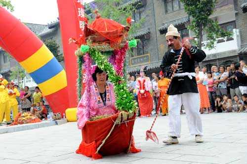 9月7日,国际玉城,锣鼓震天,唢呐齐奏。和着传统的音律,舞龙舞狮、踩高跷等民俗表演轮番上演,引得前来“凑热闹”的村民拍手称绝。
