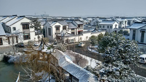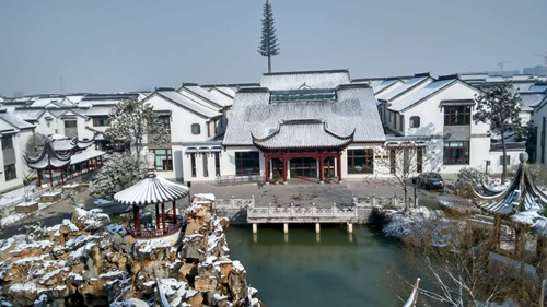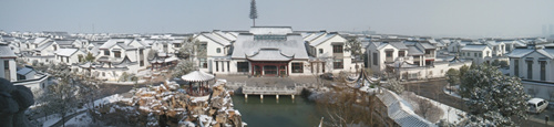 (记者 贾元武) 雪后玉雕大师园,不一样的美丽。