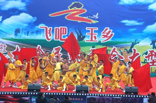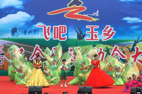 10月20日上午,在镇平县“迎农运”全民运动会上举行了阵容强大、气势磅礴的“飞吧,玉乡”大型文艺表演。文艺表演共分激情玉乡、舞动玉乡、豪迈玉乡三部分。青春美少女队组合演唱、武术表演《少林雄风》、歌伴舞《建设和谐大家园》……精彩纷呈的节目如颗颗明珠,将玉乡的风采和魅力尽情展现在观众面前。
