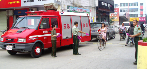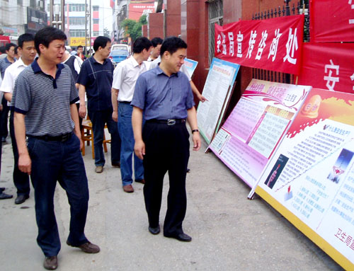 6月13日是第9个全国“安全生产月”宣传咨询日,今年的主题是“安全发展,预防为主”。镇平县政府县长王书祥等县领导走上街头,宣传安全知识,察看慰问工作人员。县安监局、消防大队、质监局、电业局、建设局、公安局、教体局、交通局、环保局、药监局等县政府安全生产委员会成员单位设立了咨询台,宣传安全生产法律法规、安全常识。