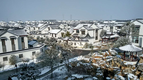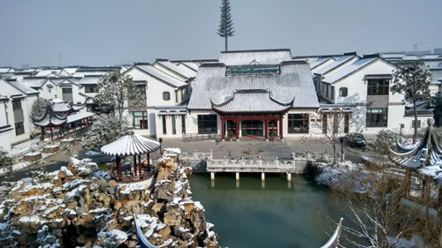 (记者 贾元武) 雪后玉雕大师园,不一样的美丽。