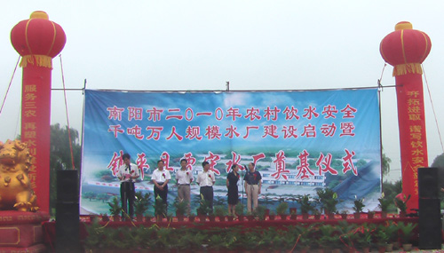 南阳市2010年农村饮水安全千吨万人规模水厂建设启动暨镇平县贾宋水厂奠基仪式在镇平县贾宋镇政府门前广场举行。贾宋水厂工程,设计总规模超过5万人,计划总投资超过2600万元。本期工程为贾宋水厂一期工程,,总投资578.59万元,将解决镇平县贾宋镇的薛关、桥北、桥东、小集4个行政村11300名群众的安全饮水。