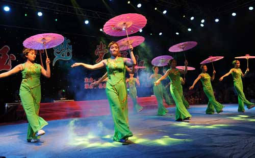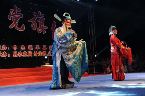 6月26日晚,镇平县“玉乡梦•党旗红”庆七一文艺晚会在县城玉鼎广场拉开了帷幕。整场晚会以歌舞、快板、情景剧、戏曲、杂技为主,清新欢快,形式多样,充分展示了文明开放发展的镇平新形象。整场晚会近2个小时,现场观看群众达5000余人。