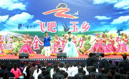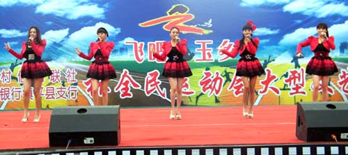 10月20日上午,在镇平县“迎农运”全民运动会上举行了阵容强大、气势磅礴的“飞吧,玉乡”大型文艺表演。文艺表演共分激情玉乡、舞动玉乡、豪迈玉乡三部分。青春美少女队组合演唱、武术表演《少林雄风》、歌伴舞《建设和谐大家园》……精彩纷呈的节目如颗颗明珠,将玉乡的风采和魅力尽情展现在观众面前。